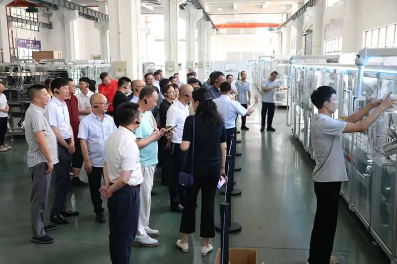 会议期间,与会人员走进星空电竞(XINGKONG ESPORTS)官方网站公司,实地考察全自动泡罩装盒一体机运行情况。
